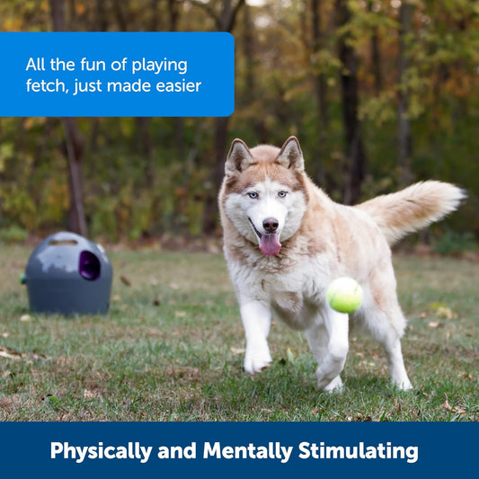 Automatic Ball Launcher, Interactive Dog Toy for Larger Breeds, Motion Sensor Promotes Safe Play, Indoor & Outdoor, Adjustable Range, A/C Adaptor or Batteries2 Standard Tennis Balls Included,
